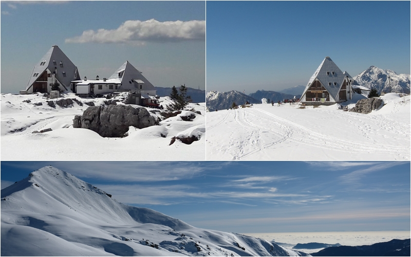 Il rifugio si presenta con architettura piramidale, ispirato alla